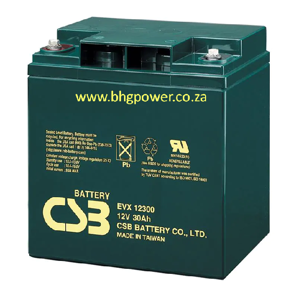 CSB EVX12300 agm battery south africa is designed specially for electric vehicles, such as electric golf cart, electric wheelchair, mower, dust collector etc. It has high cycling life, high efficiency and long service life.